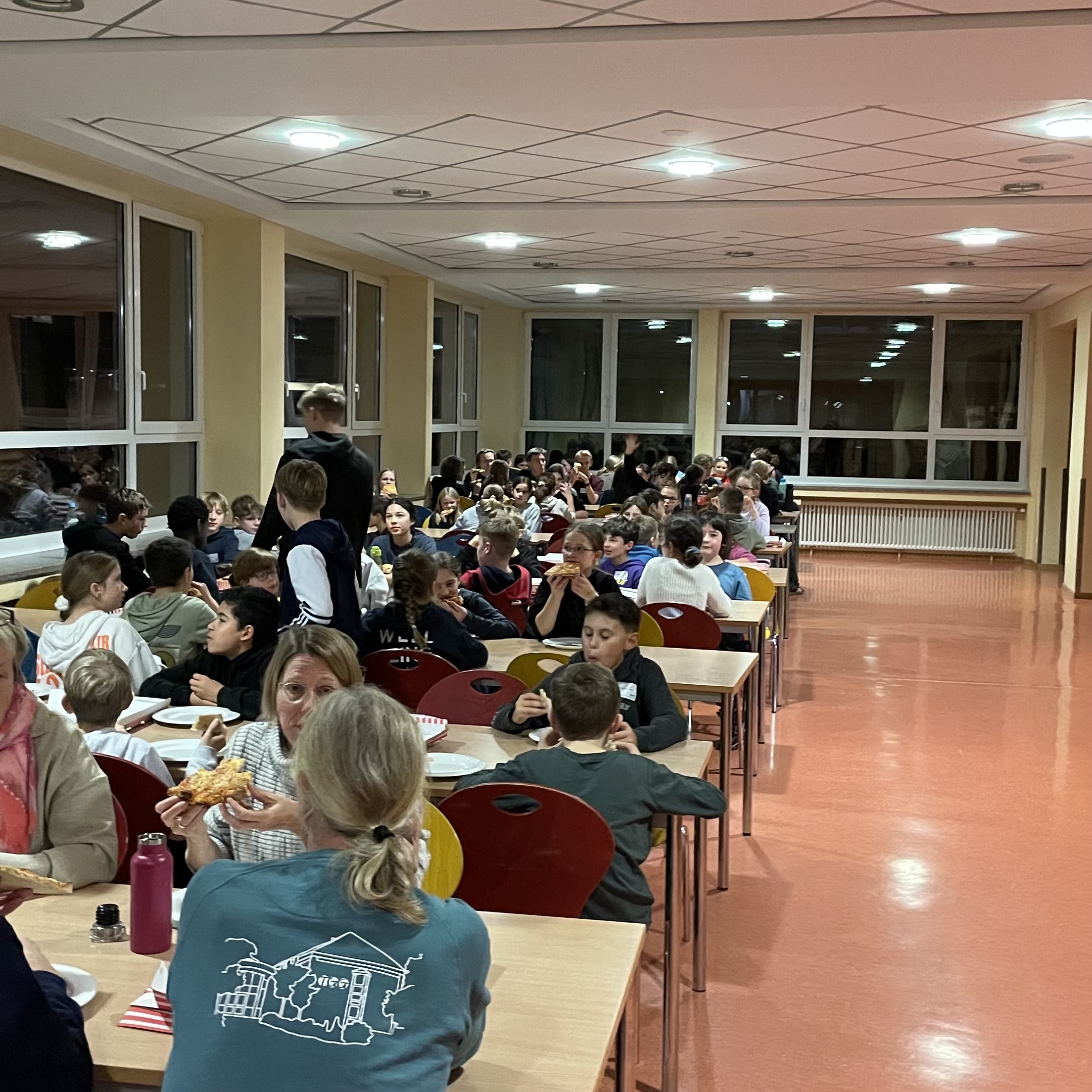 Die Lange Nacht der Mathematik ist ein deutschlandweiter Wettbewerb, bei dem Schülerinnen und Schüler verschiedener Altersstufen gemeinsam in Teams mathematische Rätsel und Knobelaufgaben lösen. In mehreren Runden müssen die Gruppen kreative Lösungswege finden, denn nur richtige Antworten führen in die nächste Runde. Am Freitagabend war es dann so weit und es trafen sich 90 motivierte Schülerinnen und Schüler des Teletta-Groß-Gymnasiums, um sich den anspruchsvollen Aufgaben des Wettbewerbs zu stellen. Nach einer konzentrierten ersten Arbeitsphase gab es in einer gemeinsamen Pause für alle frisch gelieferte Pizza. Die Stärkung kam genau zur richtigen Zeit, denn danach ging es mit neuer Energie und viel Teamgeist weiter durch die anspruchsvollen Aufgaben.