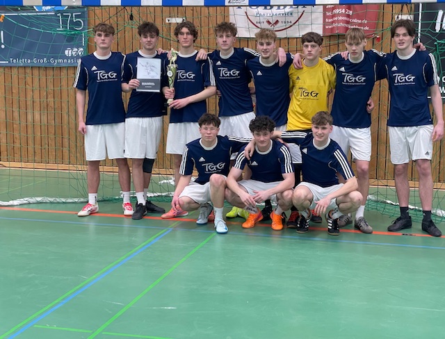 Die Vorrunde der Herren am Dienstag machte deutlich, welches Potential in beiden Mannschaften steckte. Die zweite Herrenmannschaft wurde aufgestellt aus Schülern der 12 JG. Diese hatten zum größten Teil noch nie Fußball gespielt, was in vielen Spielen überhaupt nicht aufgefallen ist. Sie zeigten großen Einsatz, waren mit Spaß am Spielen dabei und wurden mit einem dritten Platz in ihrer Gruppe belohnt. Die erste Herrenmannschaft war dagegen eine ganz andere Hausnummer und zeigte in der Vorrunde bereits, was sie können und wurden belohnt mit null Gegentoren und dem ersten Platz in ihrer Gruppe. Da nur die ersten beiden Mannschaften aus den Gruppen in die Hauptrunde kommen, durfte somit die erste Herrenmannschaft am Donnerstag zur finalen Runde. Dort trafen sie auf alte, aber auch neue Mannschaften. Die Mannschaft zeigte auch hier einen starken Auftritt. Das Team spielte bereits in der Gruppenphase als überzeugende Einheit und wurde dort als Gruppenerster belohnt. Somit stand das TGG-Team im Halbfinale dem Team des UEGs gegenüber. In dem spannenden und ausgeglichenen Spiel fiel die Entscheidung erst durch ein Elfmeterschießen für das TGG. Im Finale traf das Team des TGGs auf alte Bekannte aus der Gruppenphase. Das finale Spiel war an Spannung nicht zu übertreffen und dem Team des TGGs gelang es, in den letzten 30 Sekunden das entscheidende Tor zu erzielen und wurde somit als Sieger des Turnieres gefeiert.