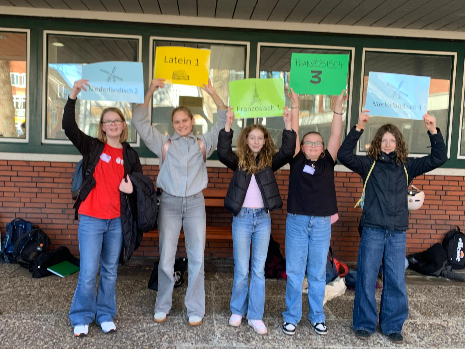Am 18. März war es bei strahlendem Sonnenschein soweit: Über 260 Grundschüler:innen aus dem Gebiet in und um Leer besuchten das TGG zum diesjährigen Schnuppervormittag. Nach einer gemeinsamen Begrüßung, in der die Aula vor guter Laune ganz schön gebebt hat, wurden die Viertklässler:innen von ihren Patinnen und Paten aus den Jahrgängen 7 und 8 auf vielfältige Weise durch das TGG begleitet. So konnte man in Kleingruppen durch eine Rallye das Schulgelände mit seinen verschiedenen Gebäuden näher kennenlernen, an einzelnen Unterrichtsstunden der Jahrgänge 5-8 teilnehmen, die Proben einer Bläserklasse in der Aula besuchen und auch an eigens für die Gäste vorbereiteten Schnupperstunden in verschiedenen Naturwissenschaften, Erdkunde sowie den Fremdsprachen teilnehmen.