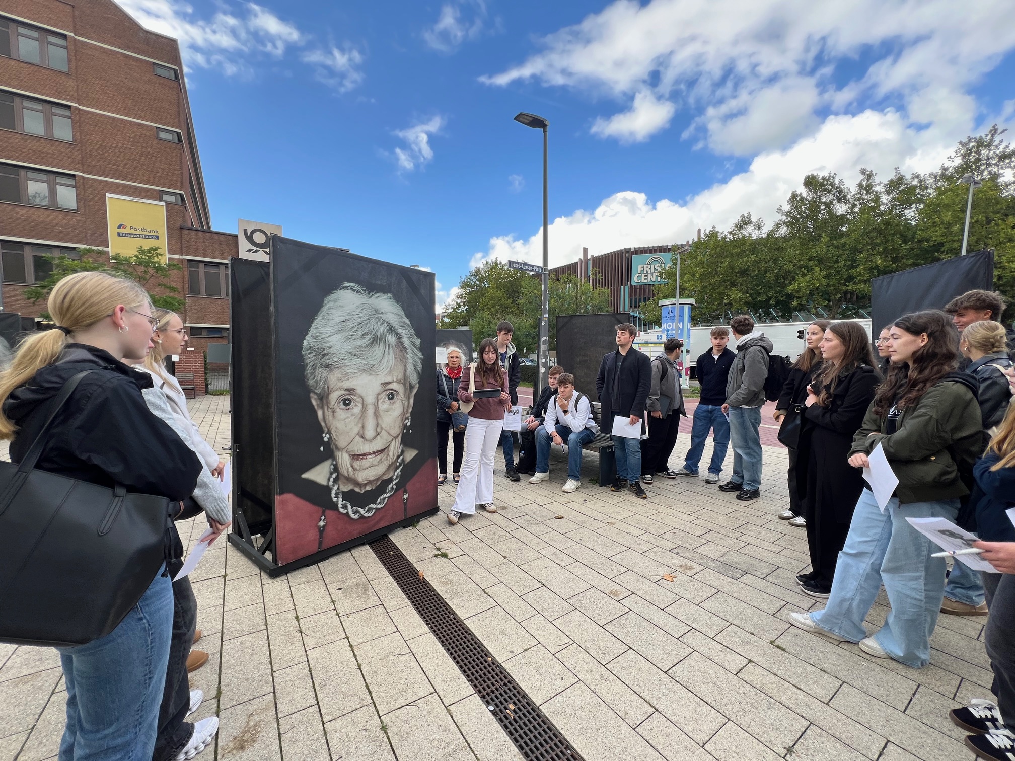 Zwischen Fahrrädern, Einkaufstüten und Schulwegen blickten Mitte September plötzlich großformatige Porträts von Holocaust-Überlebenden den Vorbeigehenden entgegen. Für einen Moment wurde der Alltag unterbrochen und genau das war gewollt.