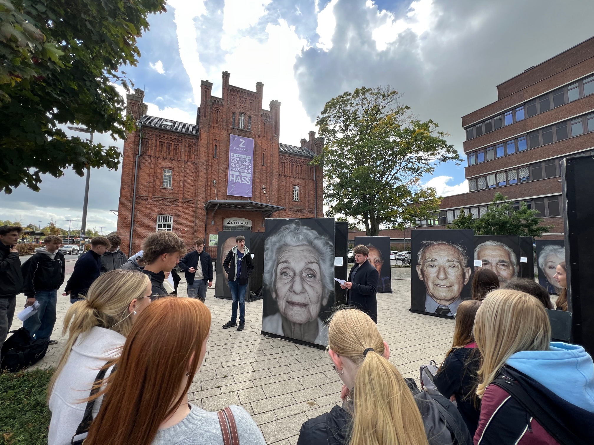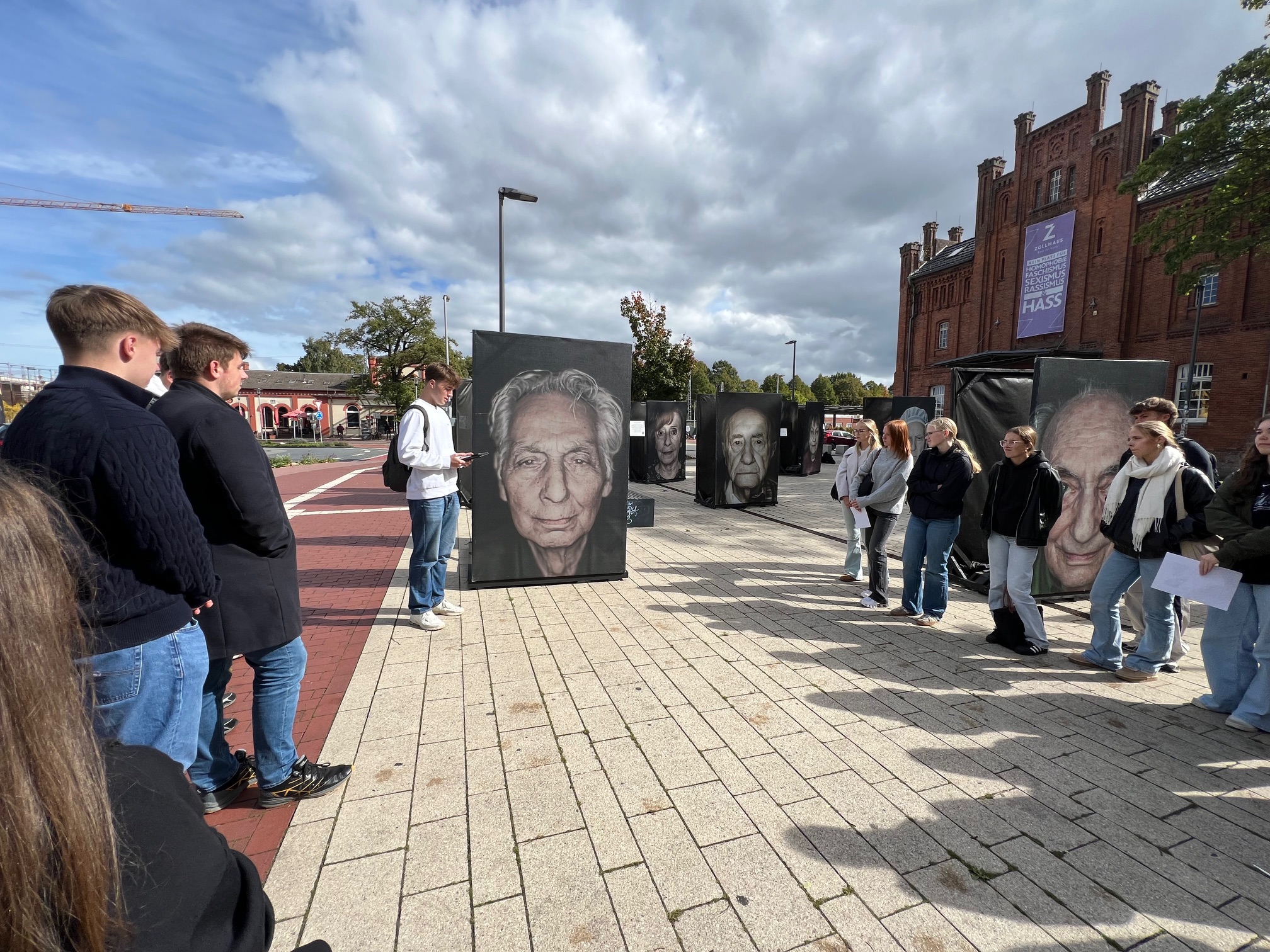 Rund 40 eindrucksvolle Porträts von Überlebenden der nationalsozialistischen Verfolgung verwandelten den Platz in einen Ort des Erinnerns und der Begegnung.