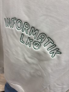 Am Dienstag, den 16.12.2025, trafen wir uns als Informatik-Leistungskurs IF71 von Herrn Kasperczyk im Digitalhub Ostfriesland, direkt gegenüber vom Haupteingang des TGG, zu einem Projekttag. Die zuvor bestellten Pullover sollten mit einem Logo versehen werden, damit wir als Kurs in Zukunft gut als Gruppe wiederzuerkennen sind. Das Logo hatten wir bereits im Vorfeld erstellt, sodass wir direkt mit der Arbeit beginnen konnten.